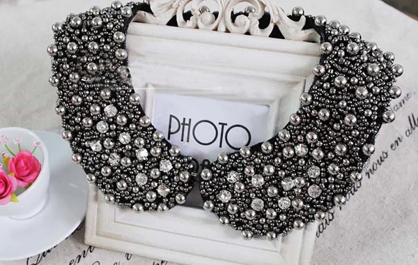 handmade peter pan collar necklace rhinestone and pearl ...