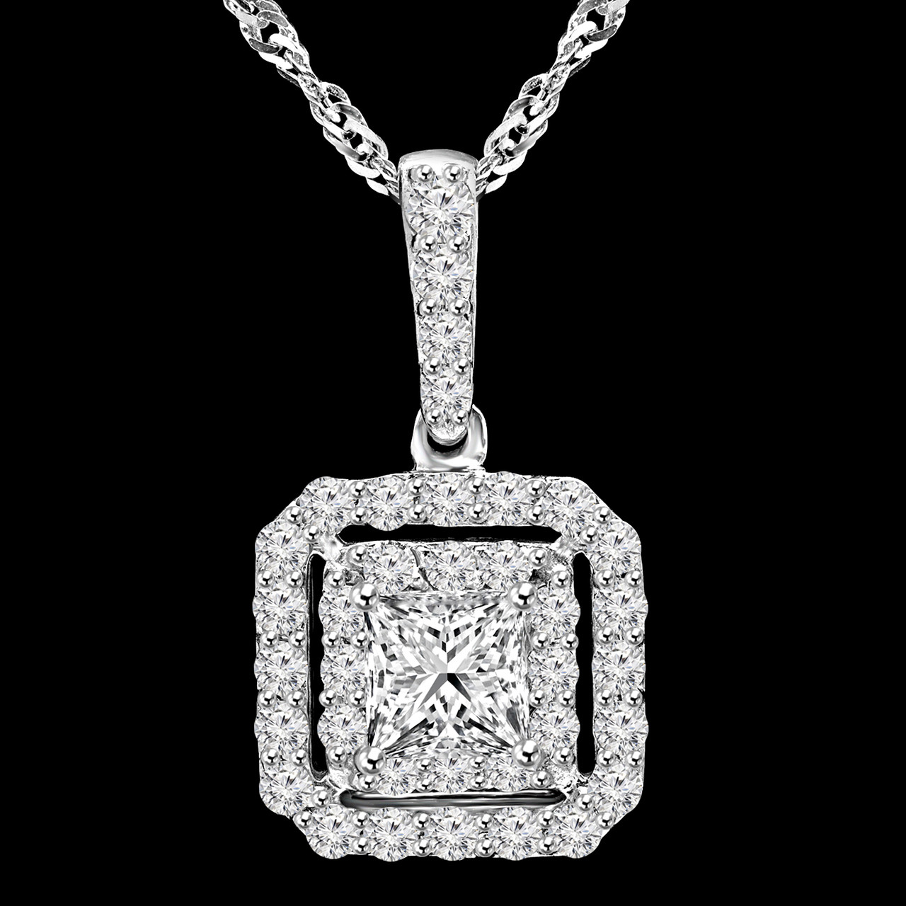 Center stone is available in a variety of carat weights; Diamond pendants are also available in varying carats and diamond shapes as well as metal types. 0.12 total diamond carat weight.