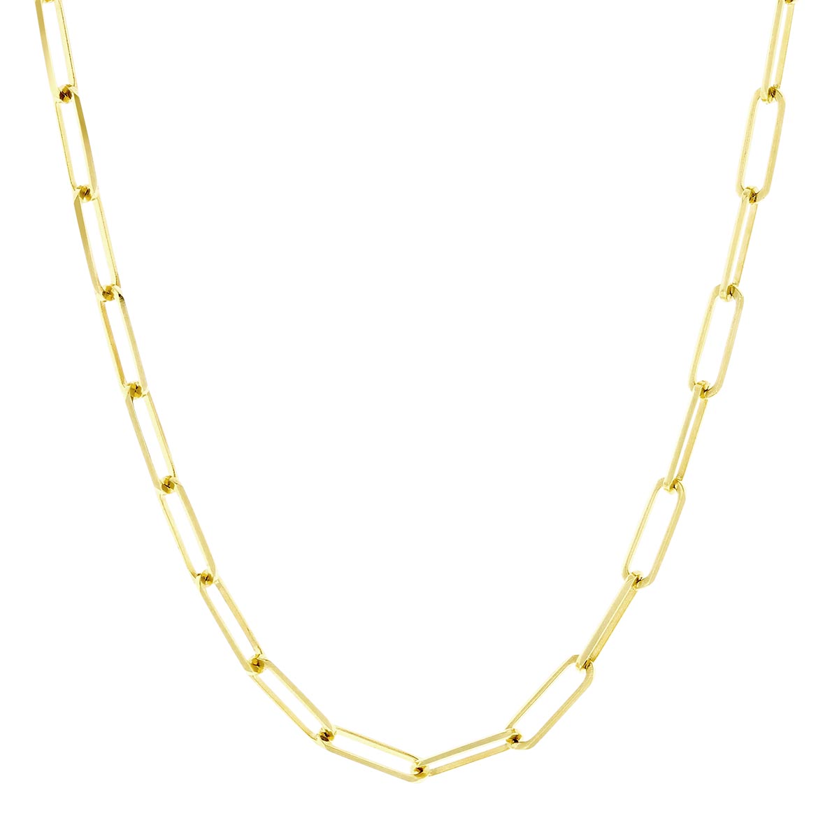 This 14k yellow gold paperclip chain offers a modern necklace look. Beautiful, contemporary, elongated hollow link paperclip chain will be sure to update any outfit. Payment options as low as $70.35 w/flexpay. With 1 (1 ) italian gold paperclip link 16 chain necklace in 14k gold positive reviews is 100%.