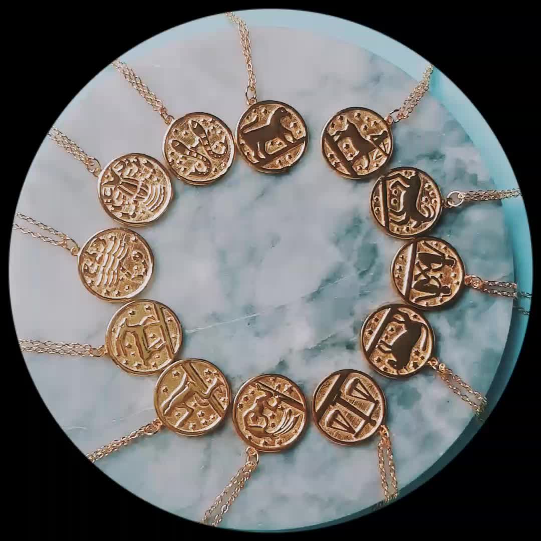 Gold Plated Zodiac Pendant Necklace. Flatfoosie gold zodiac necklace zodiac sign disc long pendant silver color coin necklaces statement women jewelry party gift. Made from high quality gold plated copper, the pendant is polished, smooth, comfortable wear, and the chain is made of stainless steel,which makes the chain srtong and durable. Women gold constell astrology horoscope zodiac sign pendant necklace.