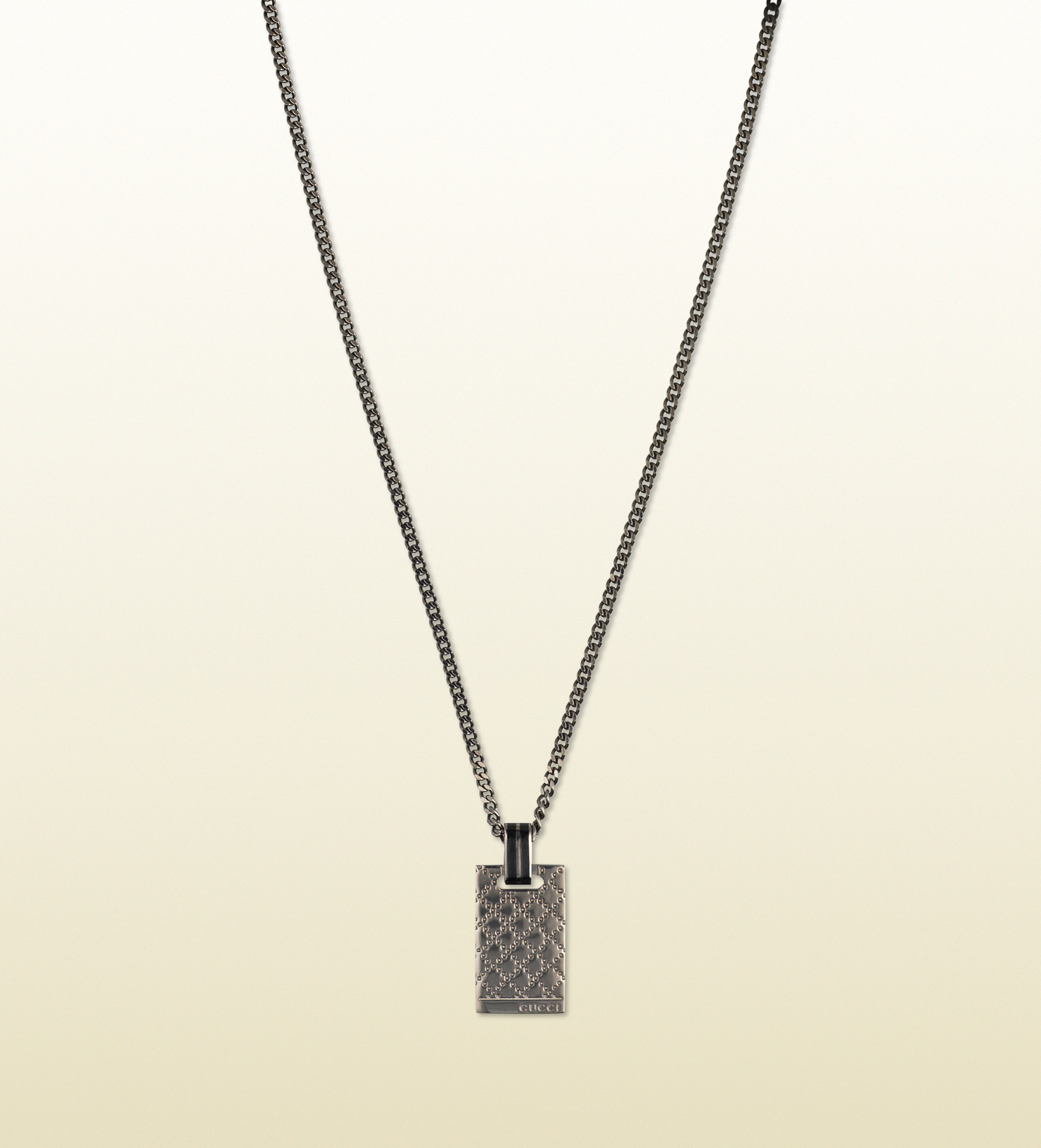 Gucci / made in italy / 925. Gucci / made in italy / 925. Gucci sterling silver interlocking g cluster chain necklace, 14. The necklace is crafted of sterling silver and features a beaded chain holding a bar station pendant engraved with the gucci logo.