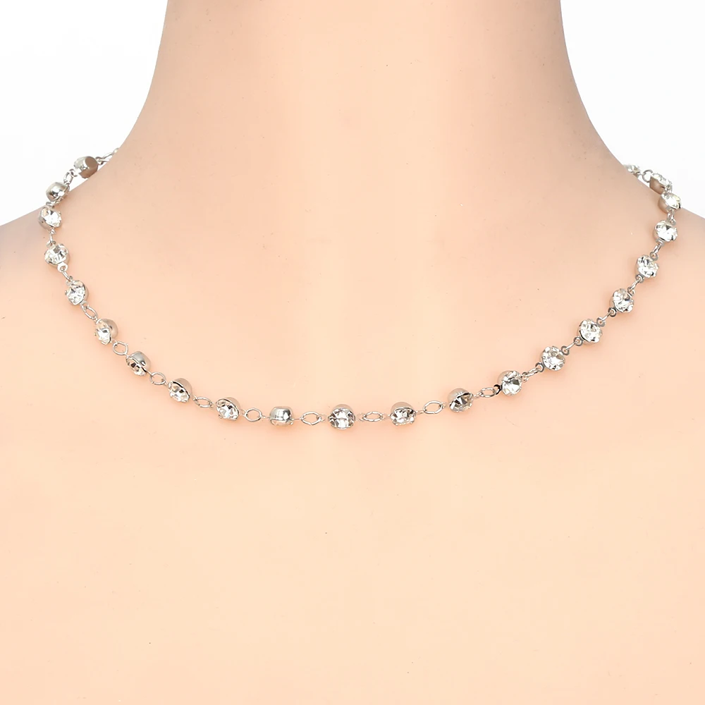 Gallery of Silver Collar Crystal Necklace