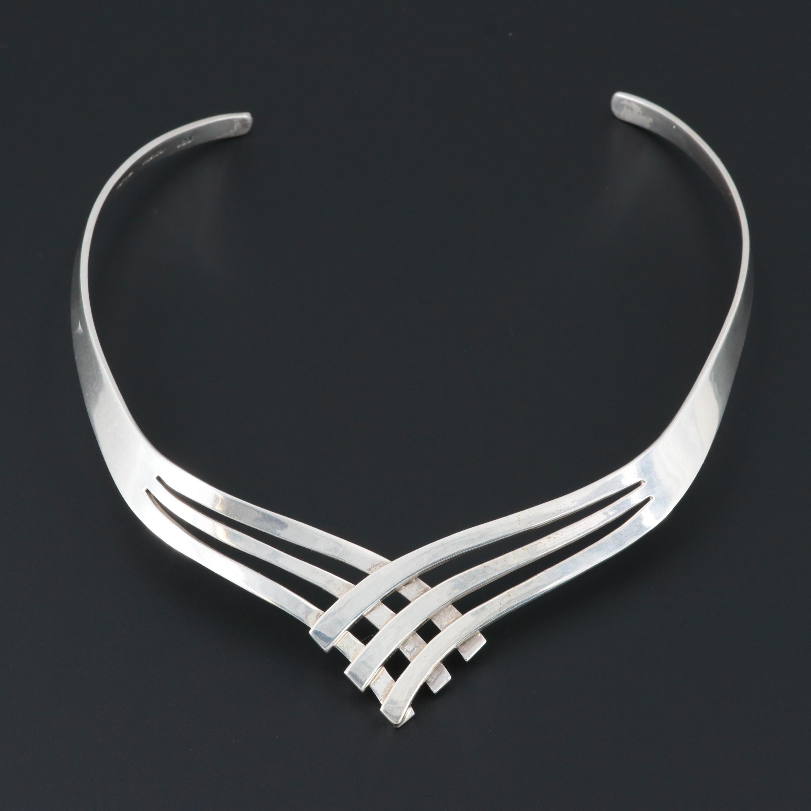 Please see the pictures carefully because they are part of the description!!! .925 sterling silver 16 collar necklace width at bottom 22mm or 7/8 tapers to 8mm or 3/16 at the ends handcrafted in taxco. Created in sterling silver, this chic style.